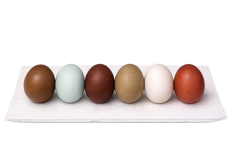 Viele kennen Eier nur in Weiß oder Braun aus dem Supermarkt. Wenn dann plötzlich olivgrüne, dunkel rotbraune oder besonders helle Eier im Nest liegen, wirkt das fast, als hätte jemand nachgeholfen. Dabei ist genau das Gegenteil der Fall: Die Farben unserer Eier sind vollkommen natürlich. Sie entstehen nicht durch Futtertricks, Farbe oder irgendeine Behandlung, sondern ganz einfach durch die Hühnerrassen, die bei uns leben.